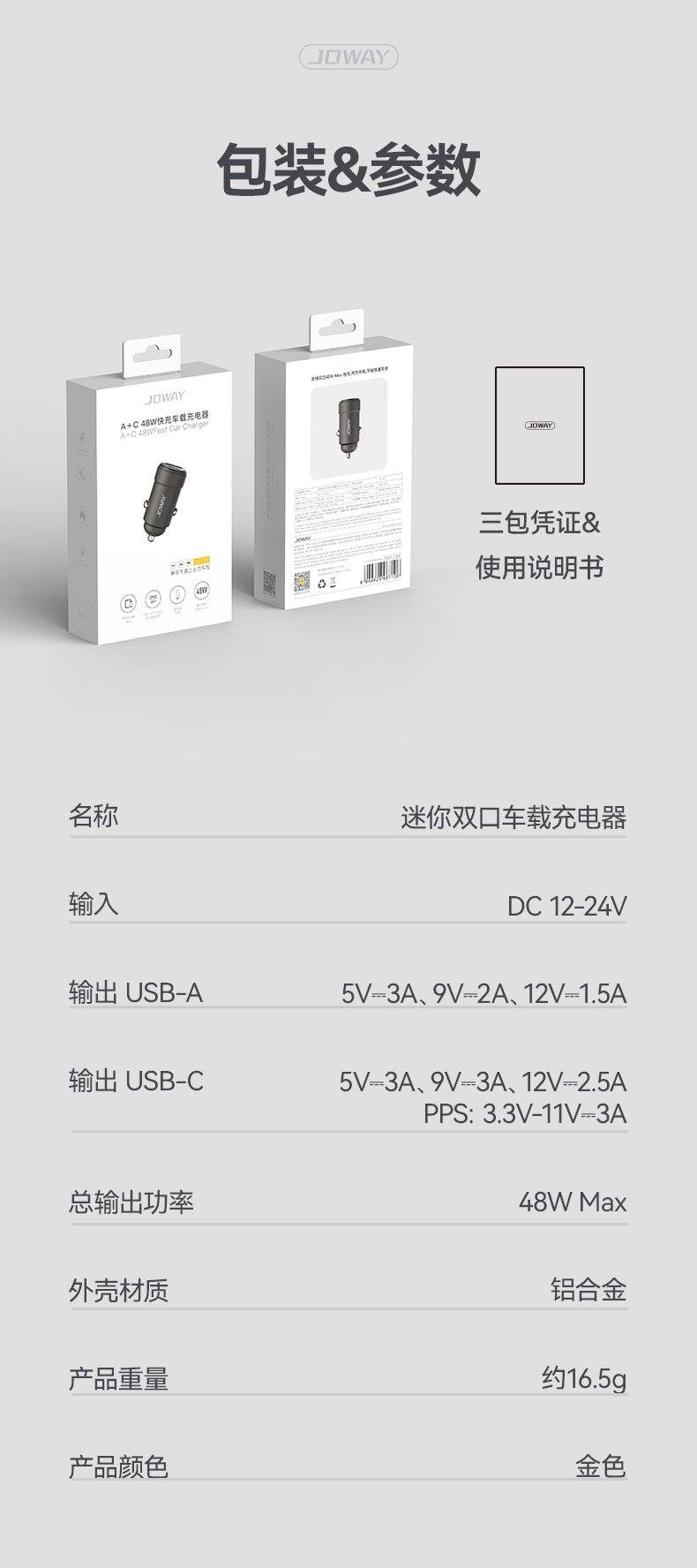 名称:迷你双口车载充电器