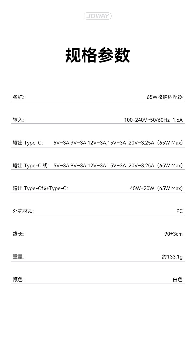 名称:65W收纳适配器